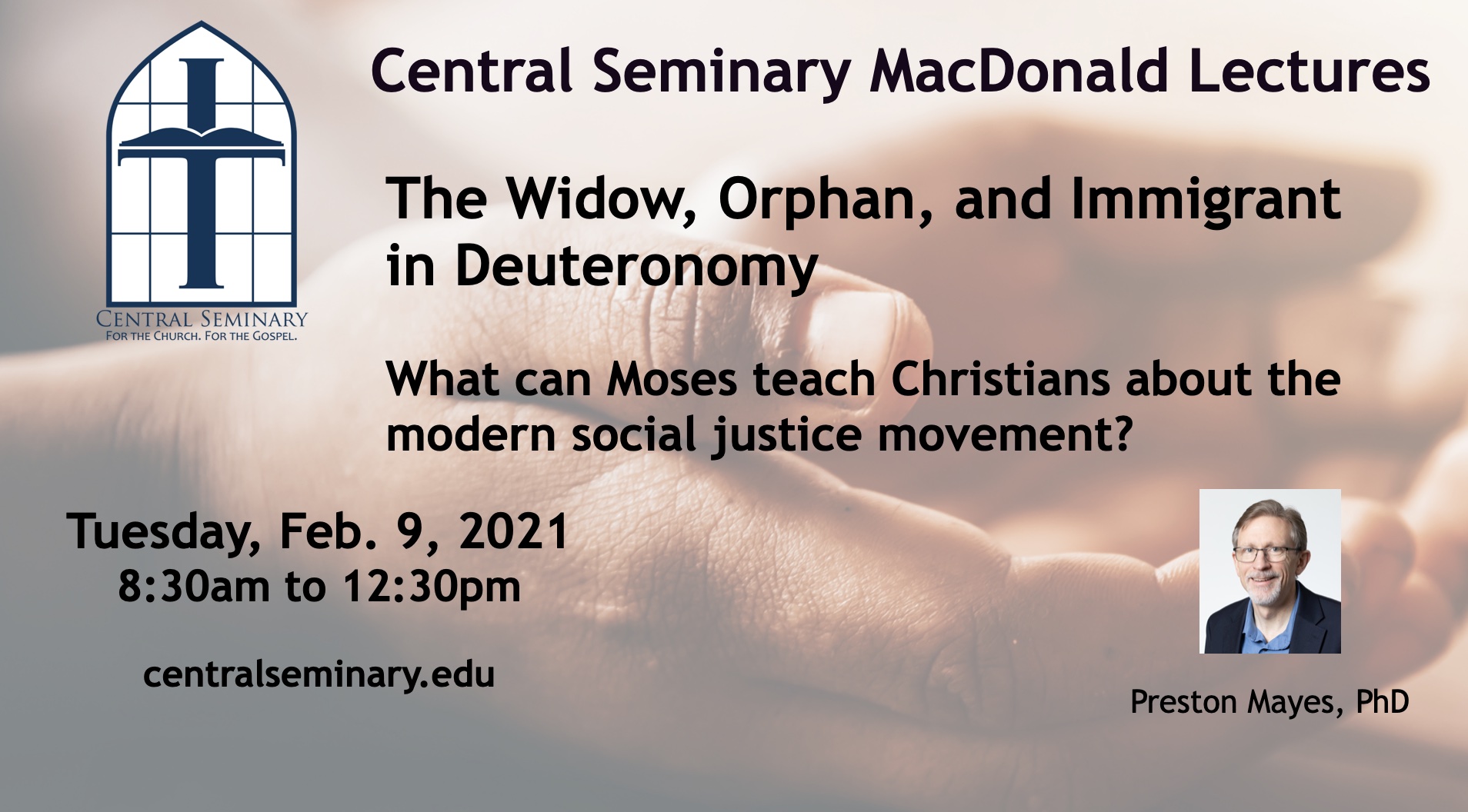 Every winter, Central Seminary conducts the MacDonald Lecture Series in Bible and Theology. This academic lecture series was created in memory of Charles MacDonald, Th.D. (1903–1971), beloved professor of pastoral theology at Central Seminary.